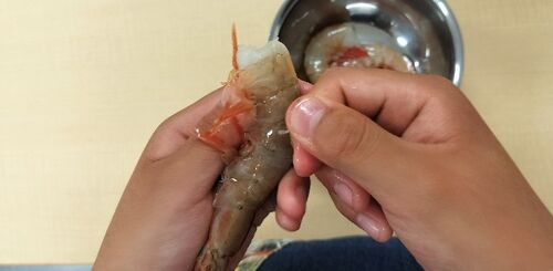 本日のモグラシェフ 海老に苦戦する 皆が海老を剥き終わっている 若干焦りながら最後まで黙々と海老と向き合う 包丁で真ん中に切り込みを入れ背わたを取る 本日、お料理イベントに初参加したのだ!! (お友達の行動力で直前に参加可能になった) 星付きレス…