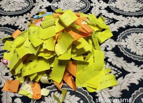 松江塾に入塾前から辞書で引いた言葉を付箋で貼っていた 母子での辞書引き対決や 付箋が増えることで 【こんなにやったんだなぁ】という頑張りを可視化 辞書引きの度に付箋をなでなでしていたモグラ 付箋は折れ曲がったり丸まったりして 絡まり合う 辞書引き…